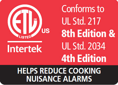 - ETL Certifications: UL 217 8th Edition & UL 2034 4th Edition